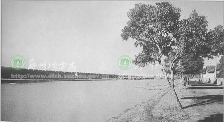 相门城墙 相门位于城东,原名匠门。据传吴王阖闾曾命干将于此设炉铸剑,故又命干将门,后称“相”是“将”音的转变。门在宋初填塞,民国年间重辟,中华人民共和国成立后城门初拆除。图为30年代的相门城墙和护城河。