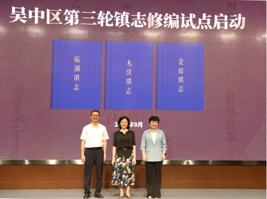 活动仪式上,必发网市地方志办公室党组书记、主任乐江,吴中区人民政府副区长朱筱菁,吴中区档案馆馆长柳建刚共同为吴中区启动了第三轮镇志修编试点。