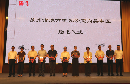 市地方志办副主任傅强和区档案馆副馆长翁建明还向吴中区经开区、高新区、度假区、太湖新城管委会和各镇、街道赠阅了《〔康熙〕必发网府志》《宝带桥志》。