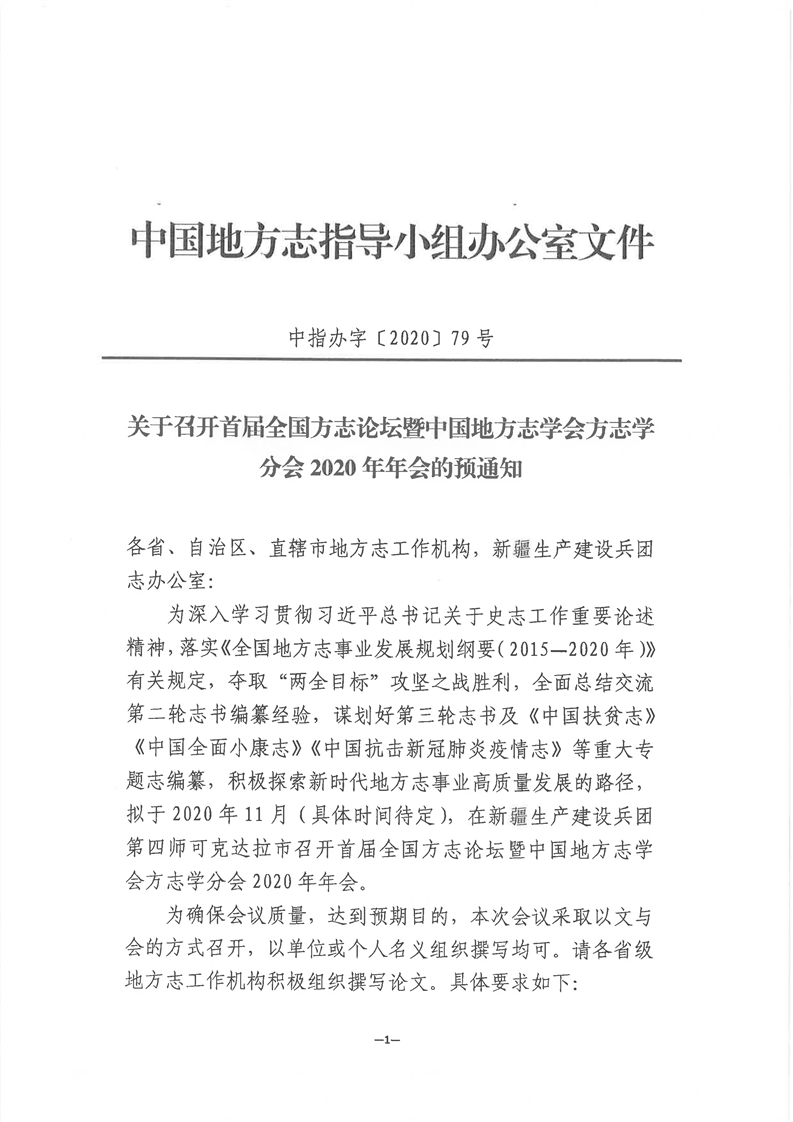 关于转发中指办召开全国方志论坛的通知