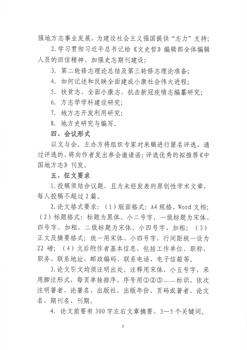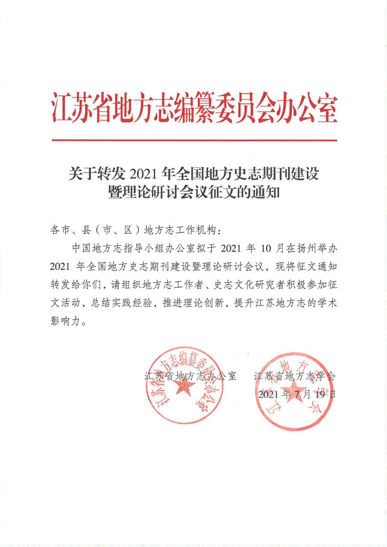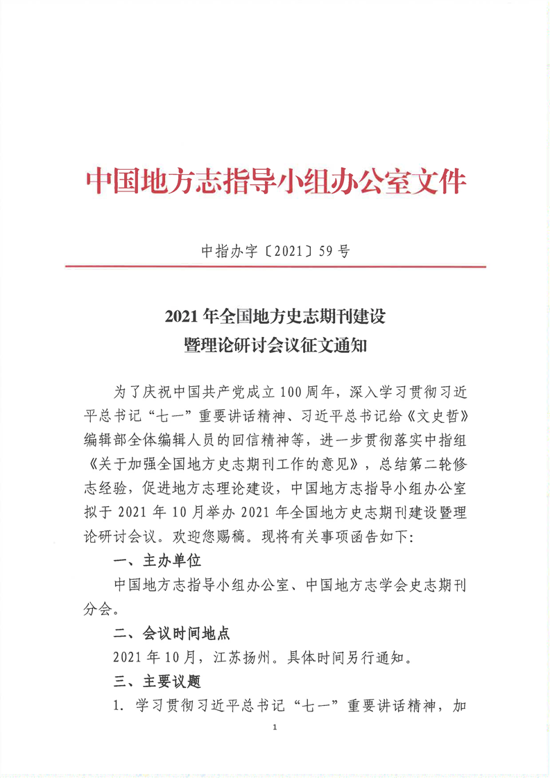 关于转发2021年全国地方史志期刊建设暨理论研讨会议征文的通知