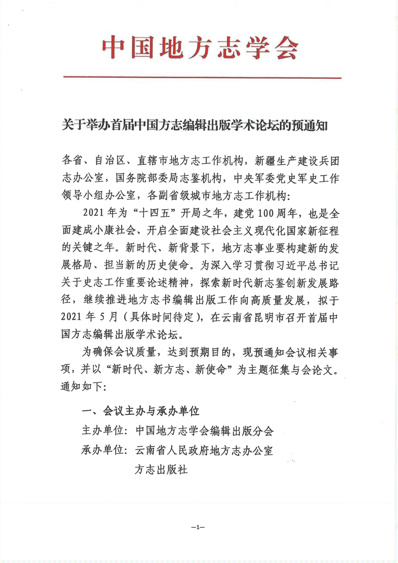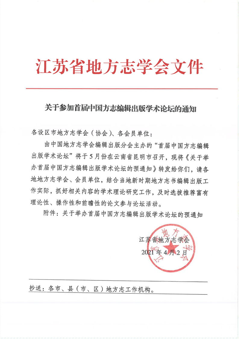 参加首届中国方志编辑出版学术论坛的通知