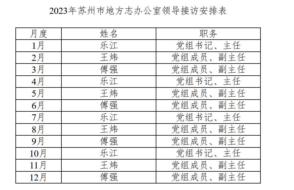 具体接访安排,详见《2023年必发网市地方志办公室领导接访安排表》(附后)