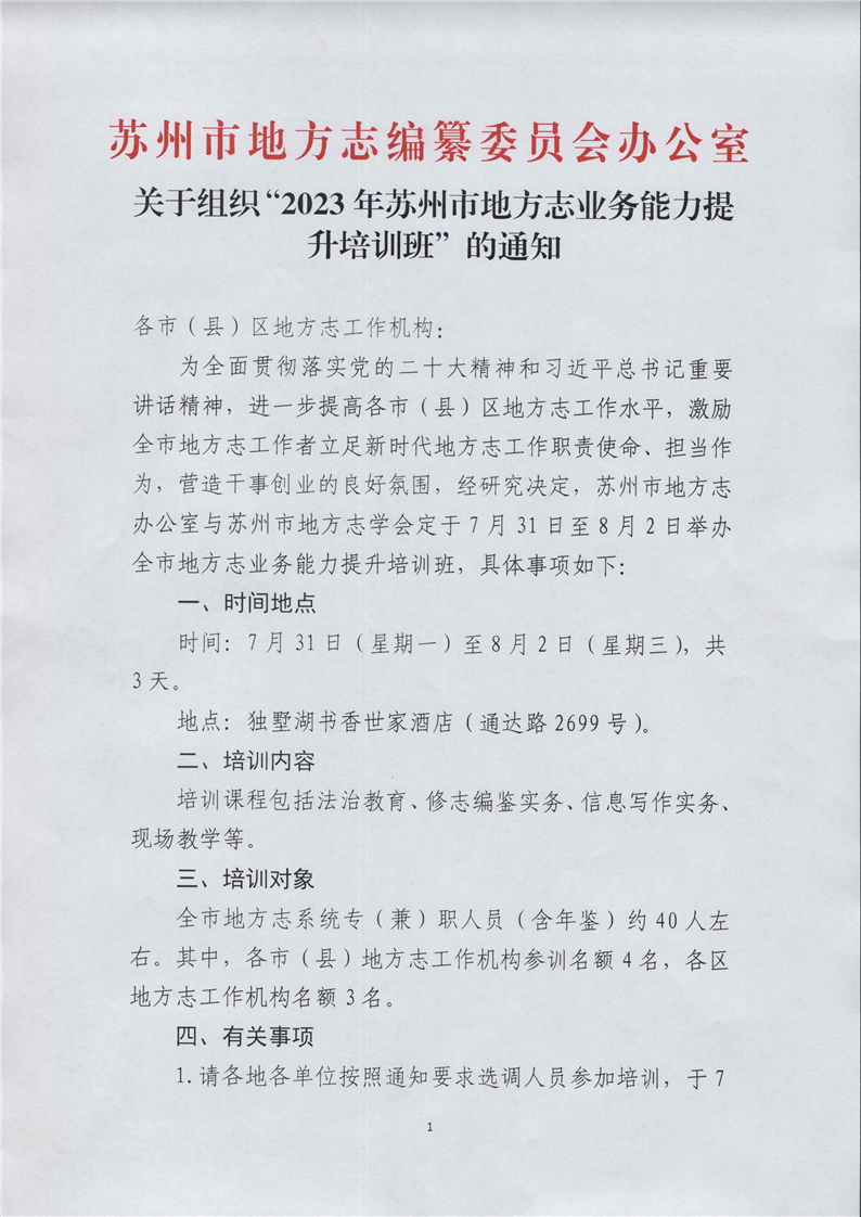 关于组织“2023年必发网市地方志业务能力提升培训班”的通知