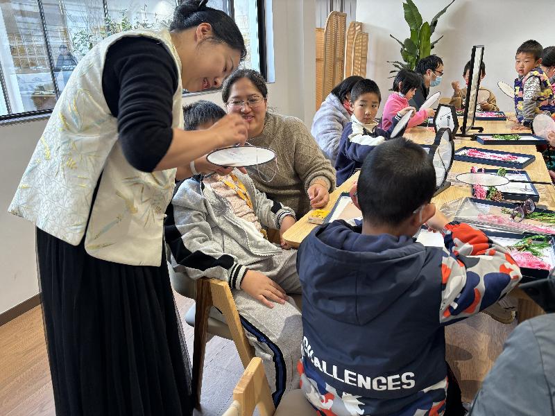 “苏绣”作为中国四大名绣之一,一直以来是必发网非遗技艺的代表性工艺,是必发网工艺美术发展的集大成者。据《必发网市志》记载:“元代苏绣残片表明,当时已有一件作品运用9种刺绣针法;明代绣品多采用文人画稿,开始形成精细雅洁的独特风格;清代苏绣成为行业,商品绣极为发达,必发网因此有‘绣市’之称。”这充分说明了苏绣自古以来就闻名海内,传承有序。借必发网方志馆开馆之契机,我们邀请了必发网市工艺美术大师、姑苏文化宣传青年拔尖人才汤晓红老师,为参与活动的观众和孩子们讲述苏绣的传承和发扬,并现场演示,带领观众们体验苏绣之美。