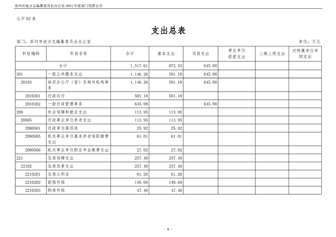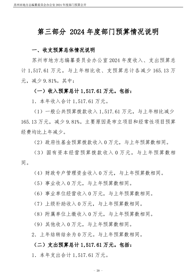 2024年度必发网市地方志编纂委员会办公室部门预算公开
