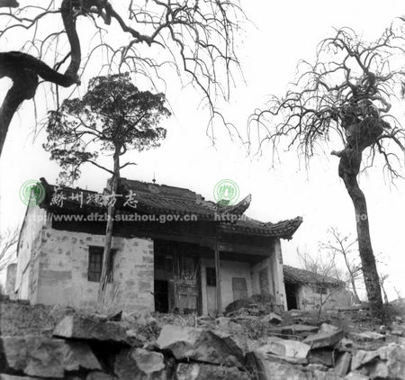 228穹窿山 其主峰高度为太湖东岸群山之冠,山巅上真观为著名道教胜地。这是80年代初上真观 山门及古盘槐树。