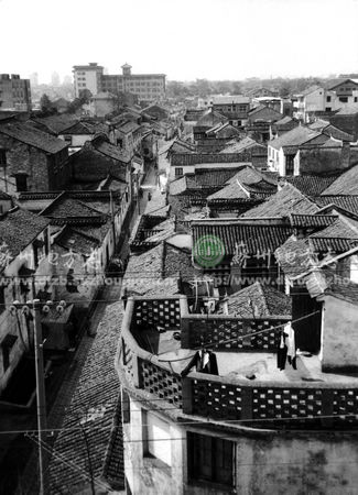 082 调丰巷与吉由巷俯瞰 南宋末诗人、画家郑所南宅在调丰巷。关有《铁函心史》记载宋亡后杂事。图为干将路拆迁前巷景。